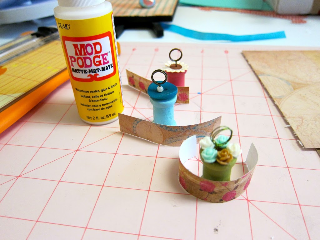 Finally, I used Mod Podge to adhere a strip of paper to the spool.