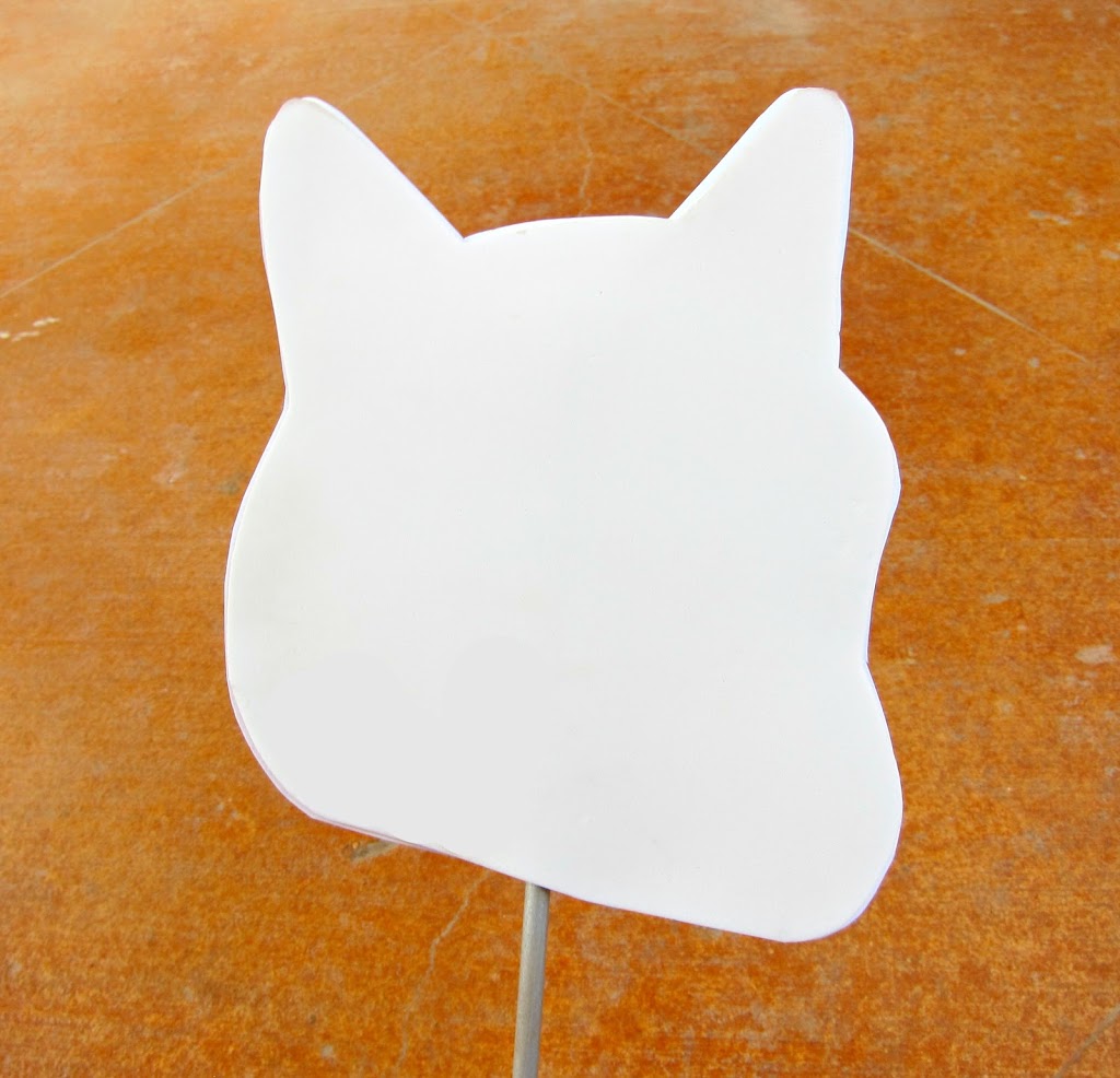Step three: Glue the dowel rod to the foam piece, then glue the printout of the cat on top.