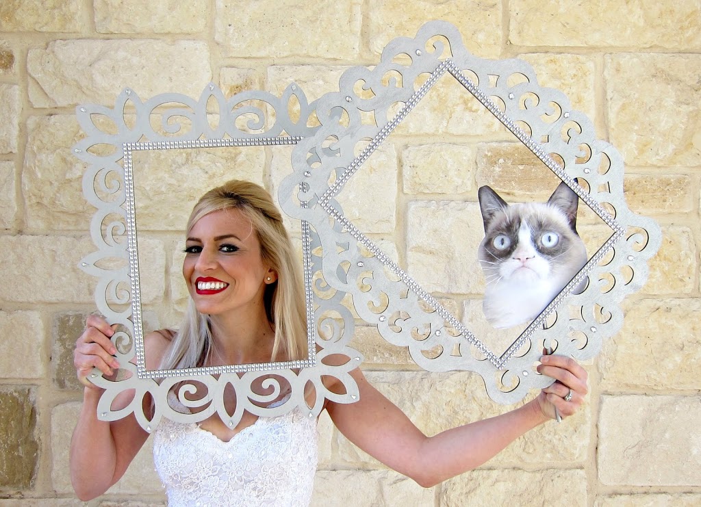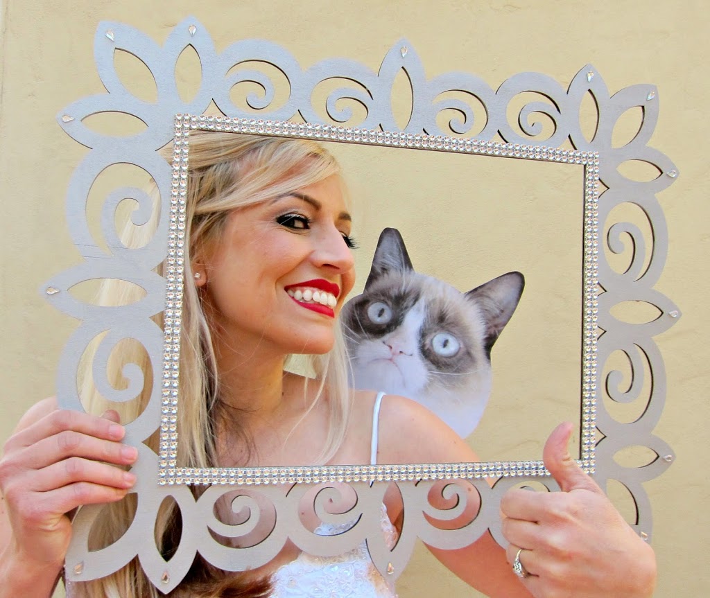 I’ve been showing you how easy it is to make photo props for a reception or party, and one prop has stolen the show: Grumpy Cat! I wasn’t planning