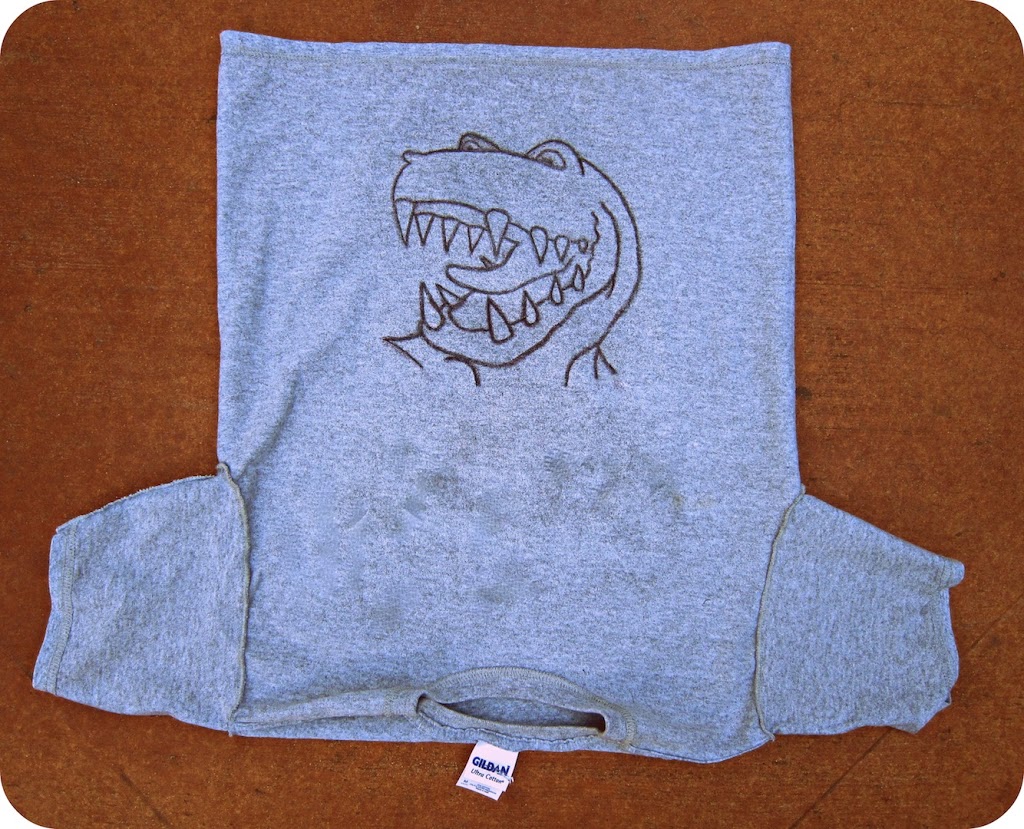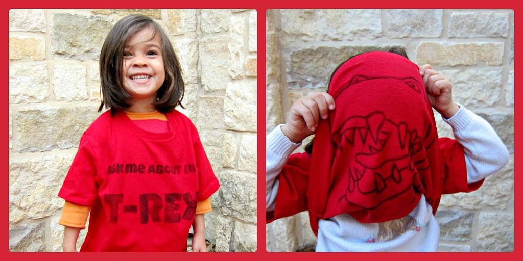 My kids think this dinosaur t-shirt is hilarious. My boys have both worn them to school (with a long sleeve shirt underneath) and came home with lots of funny stories. I might just have to make one for myself!