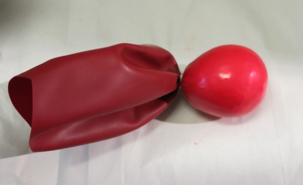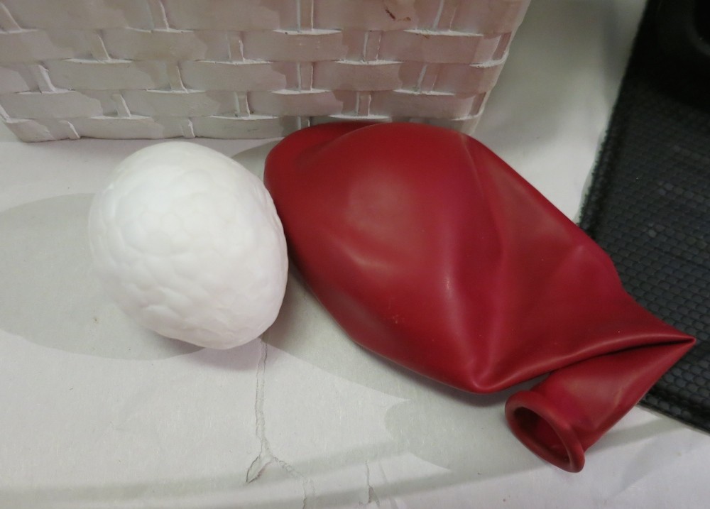 Squeeze and shape a round styrofoam ball into a balloon-like shape.
