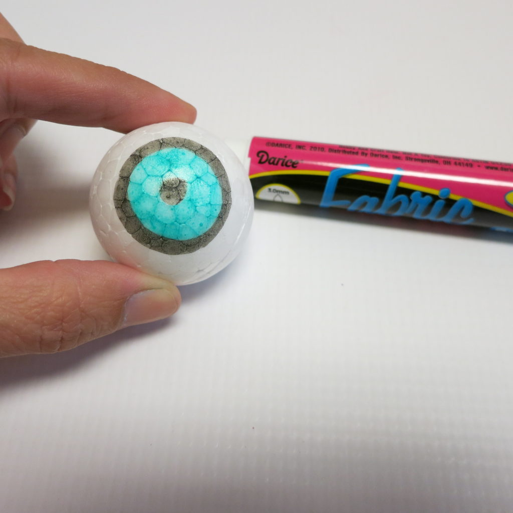 Step three: Use various colors to fill-in the fake eyeballs. I used brown, blue, and green which are all found in the Darice fabric markers set.