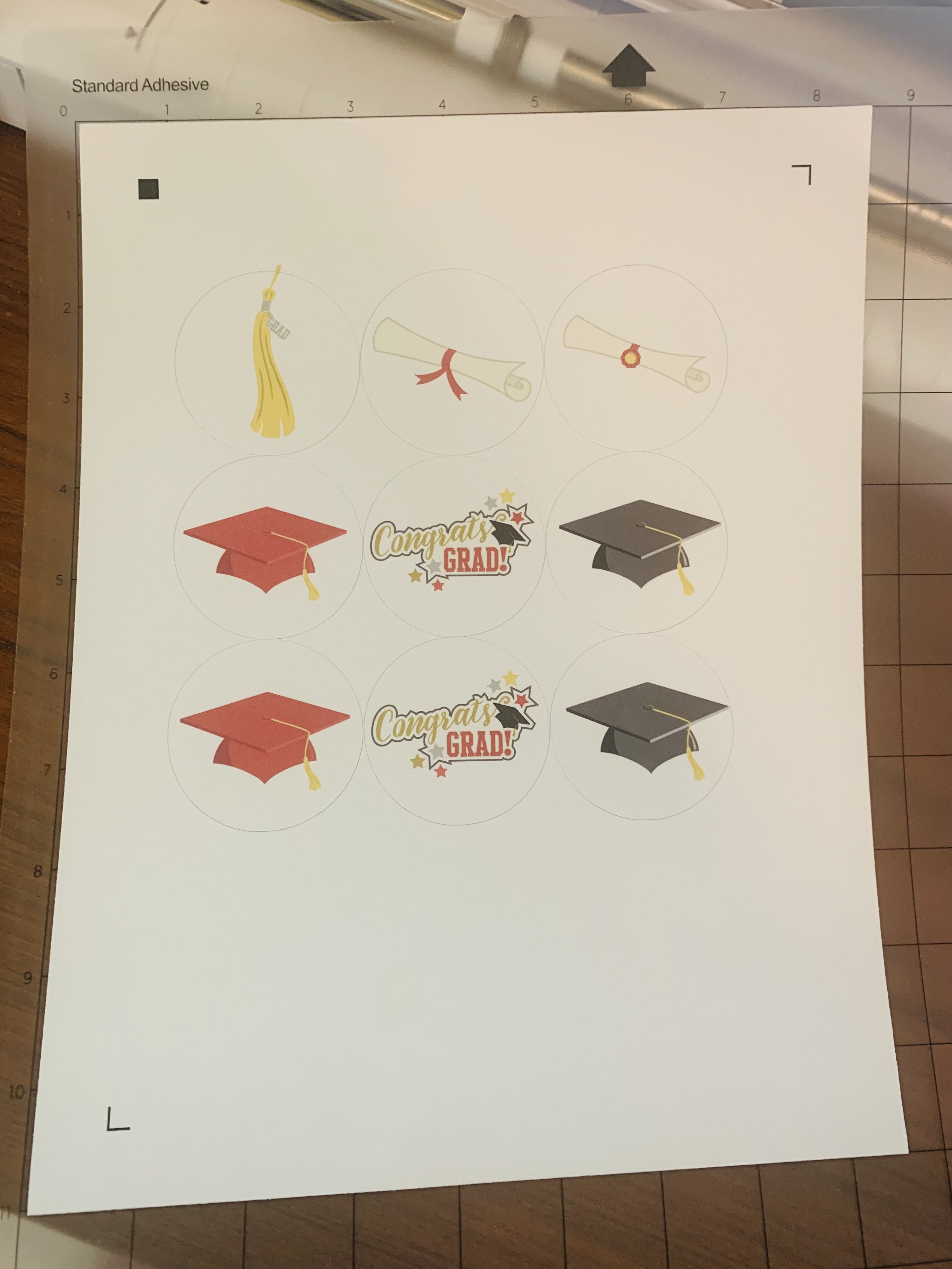 Start by creating 2 inch circles in your design program (I use Silhouette Studio). Import the graphics and add one image to each circle. Print and then cut the circles out.