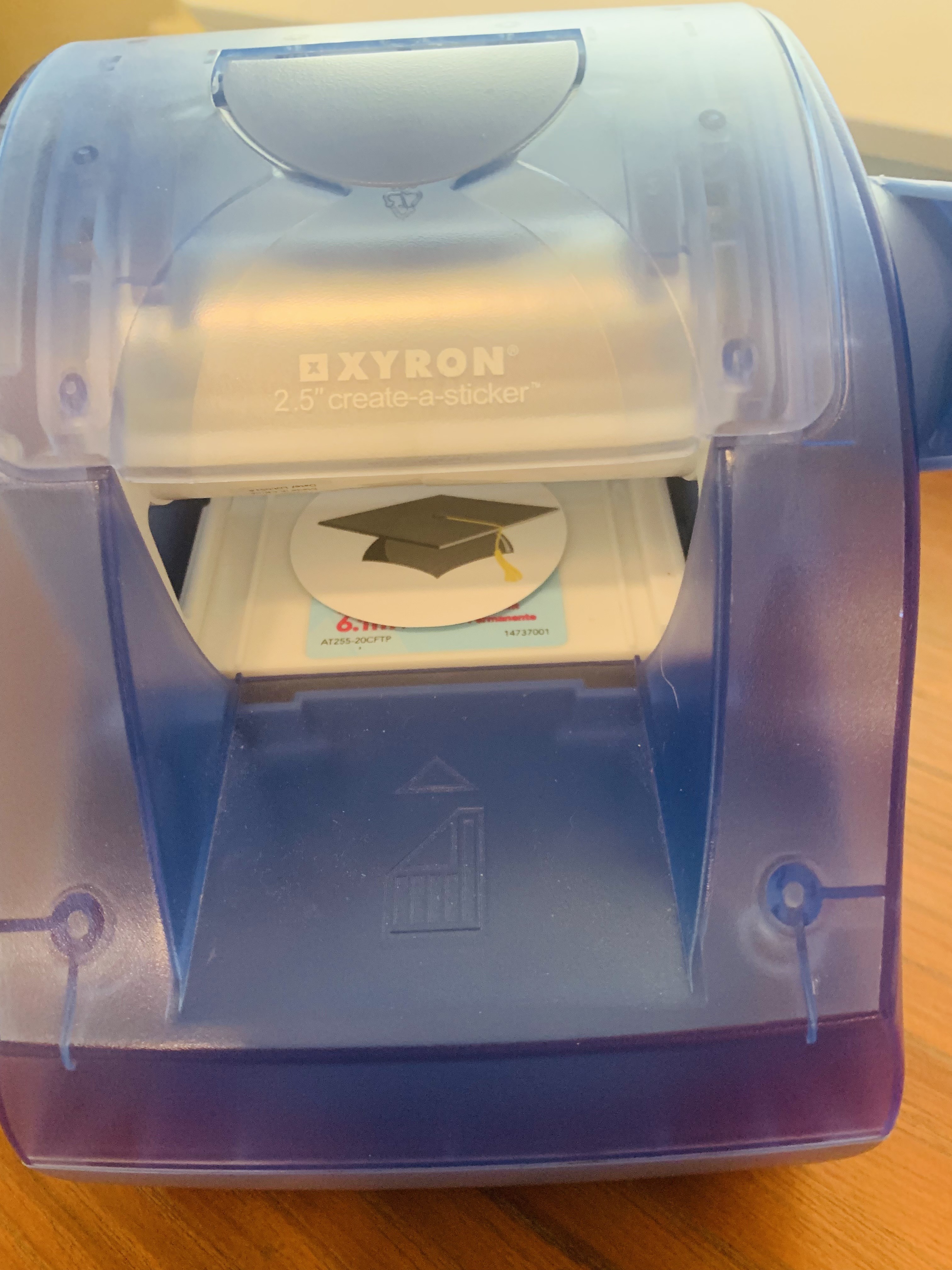 Use a sticker maker to place adhesive on half the circles. Place the stickered circle image size down on the table, add a toothpick to the back, and sandwich the non-sticky circle image on the other side, being careful to line up the sides.