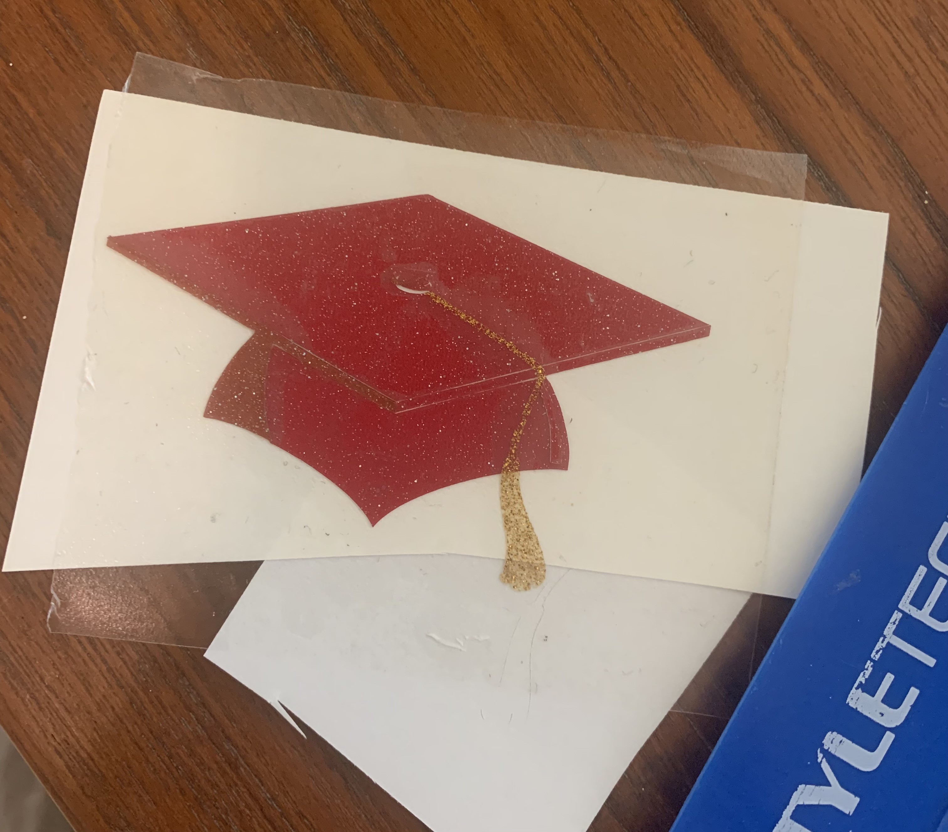 Use the transfer tape to place the vinyl graphics onto a mylar balloon. You can personalize these with the school colors. If you are inflating balloons, it’s easier to add the vinyl to the uninflated balloon first, but you can still add it to purchased inflated balloons, like I did with this one.